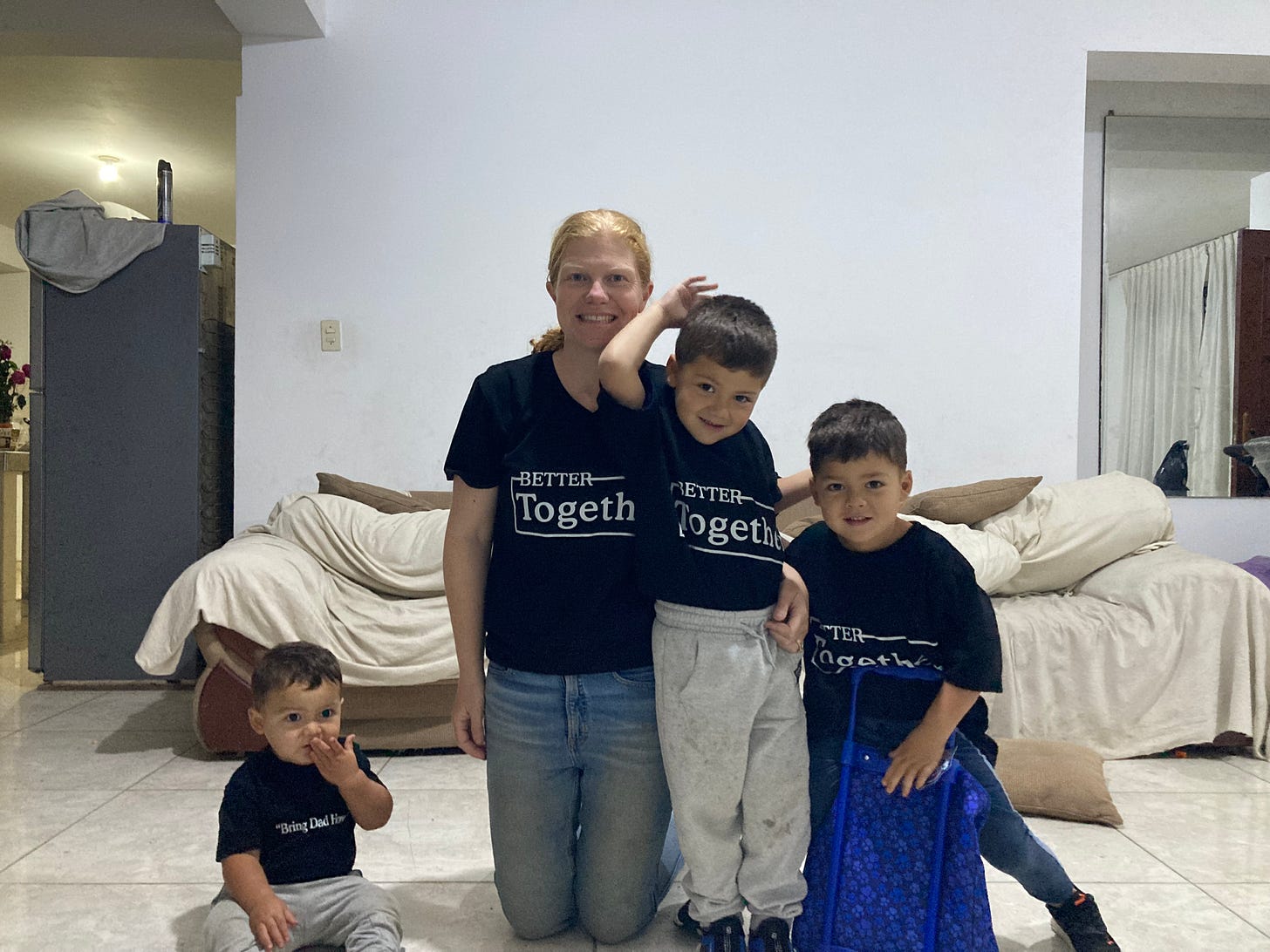 I had shirts made. On the front: Better Together. On the back: Bring Leifer Home. We all wore them. The boys’ shirts said Bring Dad Home. I have to do something—anything—to try to bring Leifer back. Taking action gives me hope, and the hope helps me crowd out the dread. I had been anxious about traveling alone with three boys. “Look for the helpers,” my mom tells me.